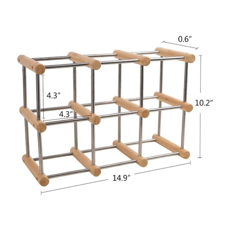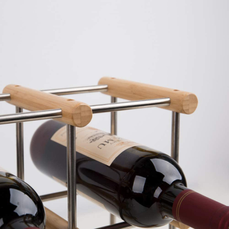 圓柱酒架由竹子和304不銹鋼制成,堅(jiān)固耐用,表面光滑拋光。當(dāng)用戶觸摸酒架或架子上拿酒瓶時(shí),可以保護(hù)用戶的手。DIY酒架組裝簡單,無需工具??梢愿鶕?jù)空間大小,選擇水平或者垂直顯示。容量大,可容納6瓶葡萄酒。每一個(gè)立方體框架都可以牢牢地裝下你的酒瓶。此外,所有的立方體都留有足夠的空間來伸出瓶口和瓶頭,這讓你很容易從架子上拿瓶子。輕巧簡單的設(shè)計(jì),也方便用戶在需要時(shí)移動酒架。
