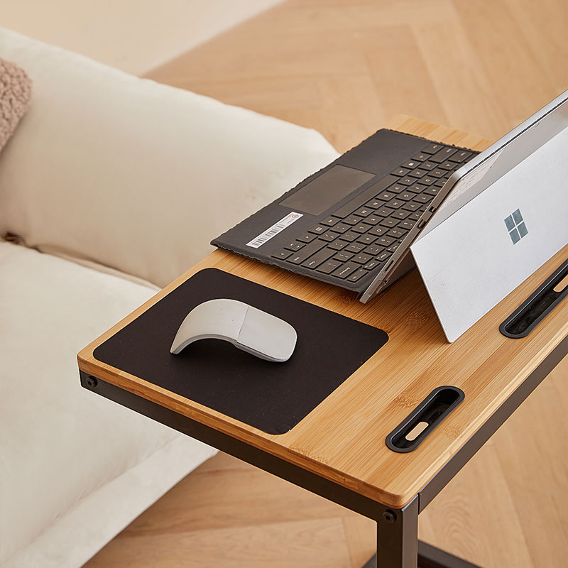 沙發(fā)邊幾即可作為筆記本電腦的桌子,自然色的桌面鑲嵌鼠標(biāo)墊,兩個(gè)不同大小的塑料槽,可放置平板和手機(jī),從而享受辦公的便捷,也可作為床邊桌,放置物品。與黑色金屬件結(jié)合,堅(jiān)固耐用,承重力強(qiáng)。