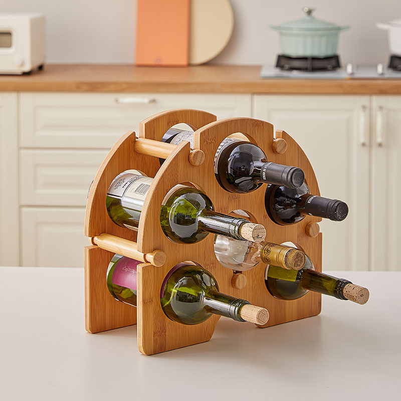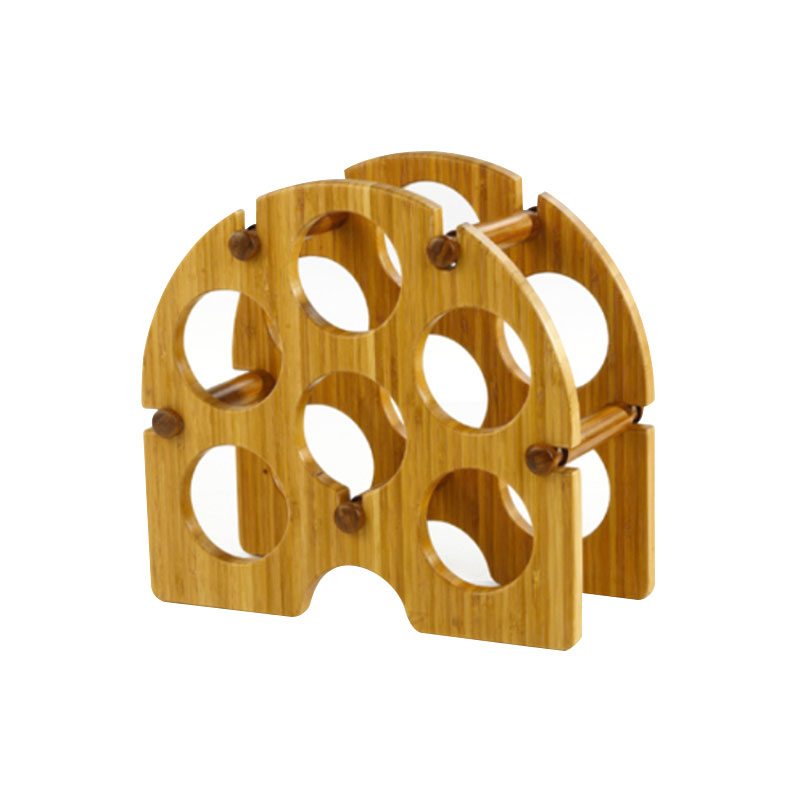 六孔酒架由竹子制成,表面光滑拋光,堅固耐用。當(dāng)用戶觸摸酒架或從架子上拿酒瓶時,可以保護(hù)手。輕巧簡單的設(shè)計,容易組裝,也方便用戶在需要時移動酒架。酒架可容納6瓶葡萄酒。每一個圓孔設(shè)計都可以牢牢地裝下酒瓶。此外,所有的圓孔都留有足夠的空間來伸出瓶口和瓶頭,這很容易從架子上拿瓶子。酒架可以完美地適配家里的廚房,食品儲藏室,櫥柜,餐廳等。